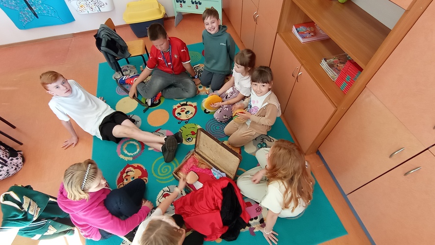 Warsztaty teatralne we wrześniu i październiku odbywały się pod hasłem integracji zespołu teatralnego. Obok zabaw integrujących grupę, poznaliśmy podstawowe pojęcia związane z teatrem: rekwizyt, reżyser, aktor, tekst główny, tekst poboczny, improwizacja. Stworzyliśmy scenariusz baśni Królewna Śnieżka i siedmiu krasnoludków i pracowaliśmy z tekstem.