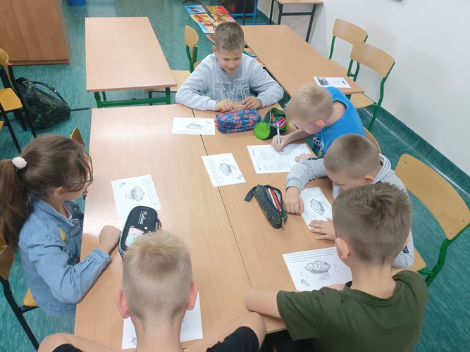 Podczas zajęć kółka matematycznego we wrześniu i w październiku uczniowie kl. I wykonywali proste działania matematyczne w zakresie 10 oraz rozwiązywali zadania tekstowe na kartach pracy.