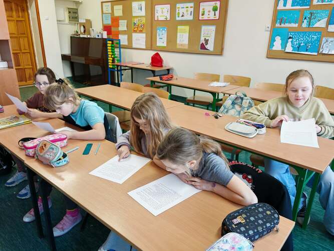 Podczas zajęć kółka matematycznego uczniowie doskonalili umiejętność odczytywania godzin na zegarze oraz rozwiązywali zadania tekstowe związane z upływem czasu. Ćwiczyli też umiejętność szybkiego liczenia w poznanym zakresie.