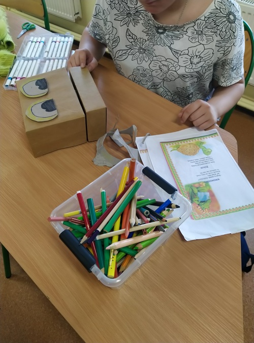 Uczennica z wielkim zapałem kontynuowała naukę szydełkowania. Ćwiczyła pamięć grając w grę ,,Na ratunek". Układała dowolne figurki z klocków MELI i odgrywała scenki z użyciem wykonanych modeli. Opowiadała na temat wycieczki do Warszawy, która odbyła się w lutym.