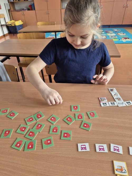 Uczennica podczas zajęć układała wyrazy oraz dodawała i odejmowała w zakresie 10. Ćwiczyła pamięć grając w grę ,,Na ratunek". Układała dowolne figurki z klocków MELI i odgrywała scenki z użyciem wykonanych modeli. Grała w grę ,,Spy Guy", dzięki której ćwiczyła spostrzegawczość i skupienie.