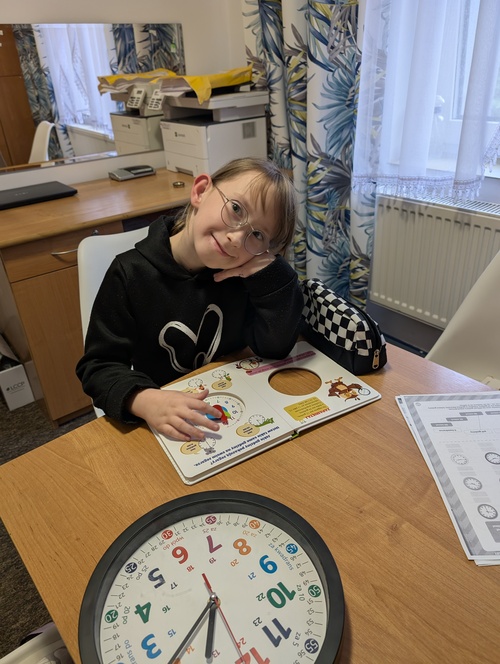 Podczas zajęć wrześniowych i październikowych uczennica rozwijała umiejętności społeczne i praktyczne. Pracowała m.in. nad samodzielnością, wykorzystując książki z serii Fenek min. do nauki zasad zachowania przy stole i posługiwania się sztućcami. Ćwiczyła także rozumienie pieniędzy oraz proste sytuacje zakupowe, a w rozmowach poruszała emocje pojawiające się w codziennych sytuacjach. Dodatkowo omawiała tematy związane ze świętami i tradycjami, aby budować wiedzę o otaczającym świecie.